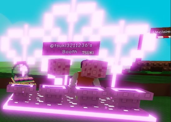 Each server has approximately 30 player stalls in the Farmers Market. Find an empty stall that displays "Unclaimed," approach it, and press the button to claim it. Basic stalls can be claimed for free, and default free skins can be used.
